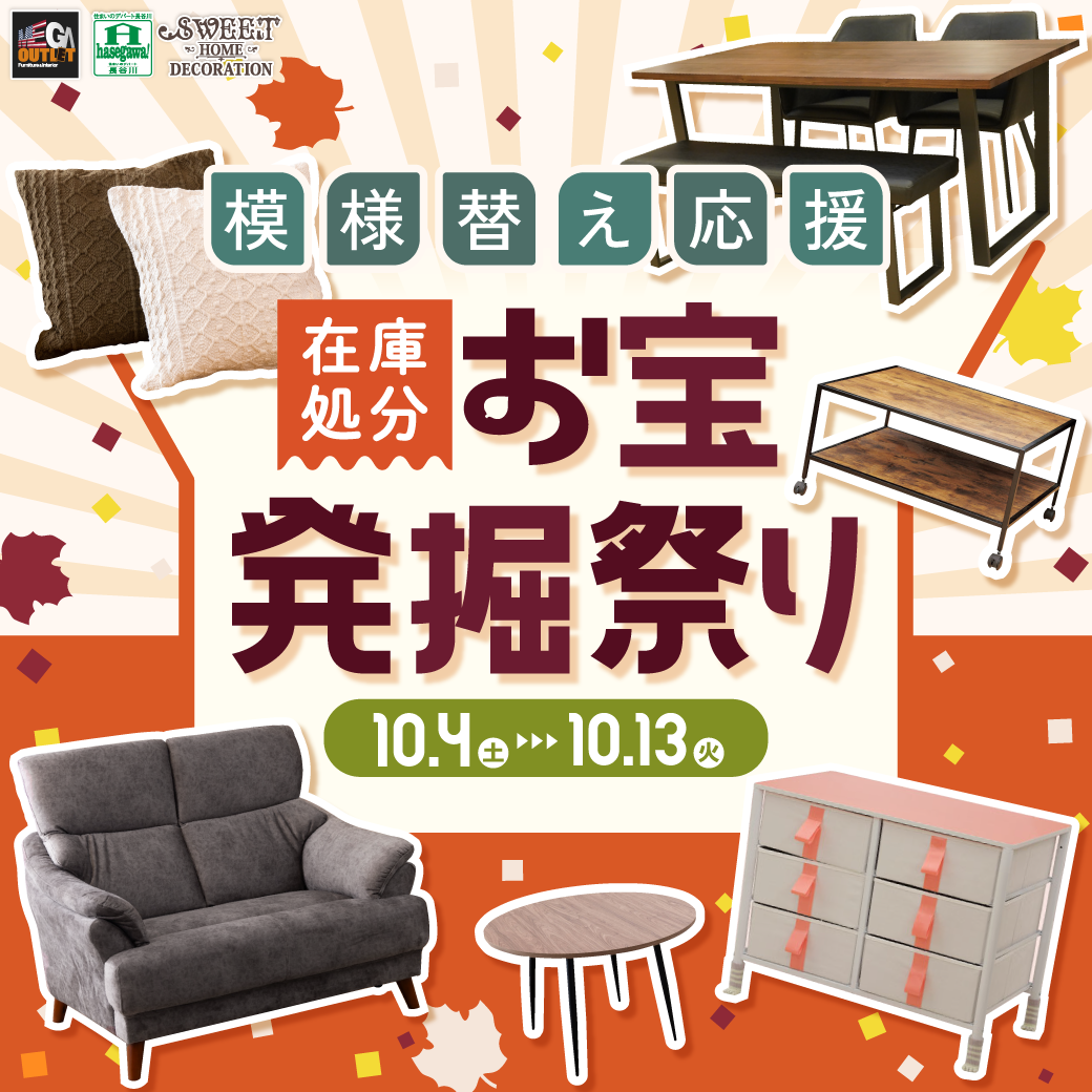 10/4号 スイデコ/メガアウトレット「在庫処分!お宝発掘祭り!!~秋の模様替え応援!」