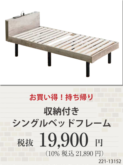 スイデコ倉庫開放市inちとせ ベッド 数量限定【シングルベッド2台セット】税抜70,000円 | お買い得!持ち帰り【収納付きシングルベッドフレーム】税抜19,900円 |