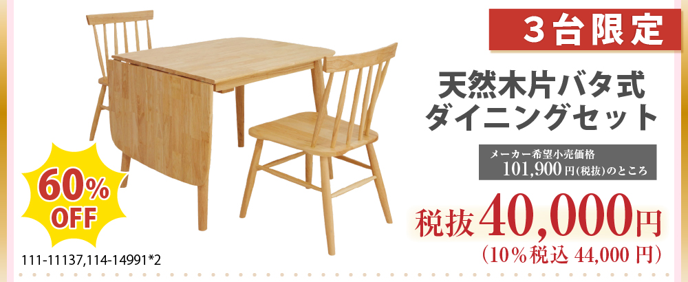 12/21限定【天然木片バタ式ダイニングセット】税抜40,000円 |