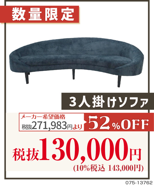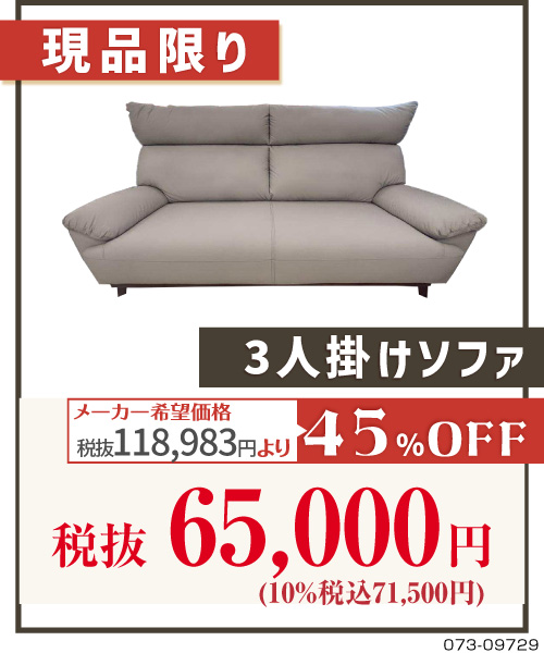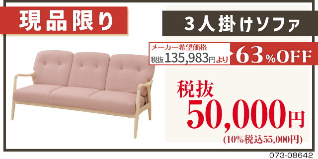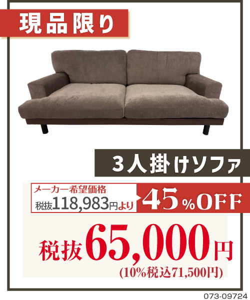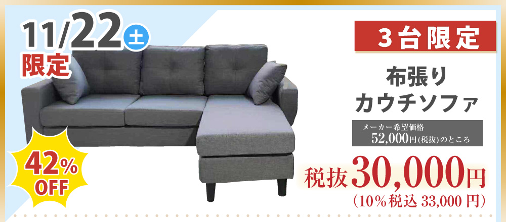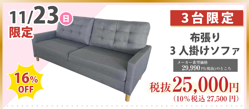 1½3限定【布張り3人掛けソファ】税抜25,000円