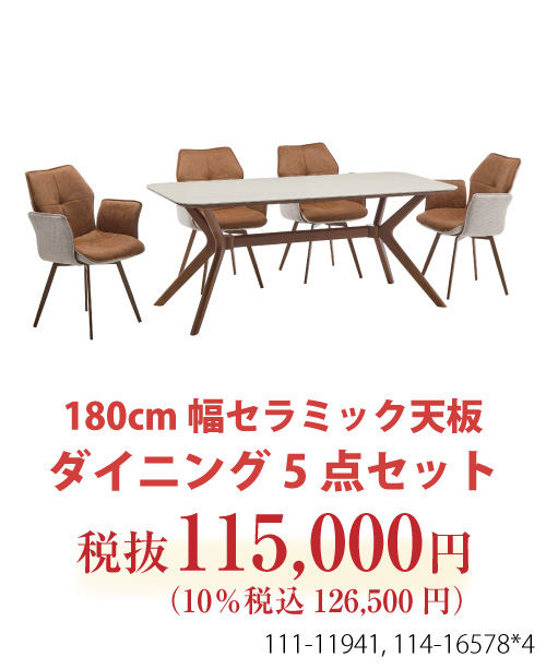 180cmセラミック天板 ダイニング5点セット 税抜115,000円