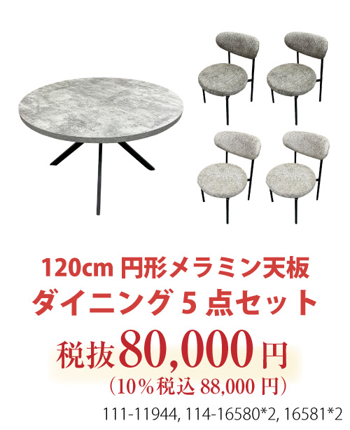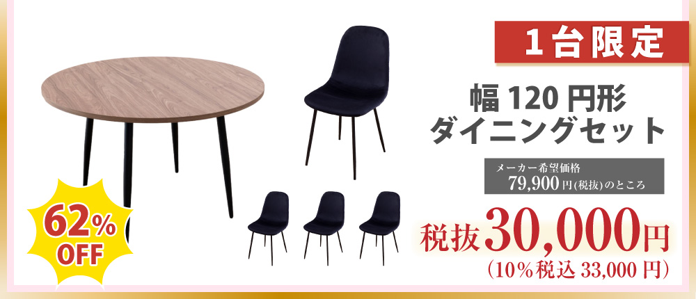 1½2限定【幅120円形ダイニングセット】税抜40,000円