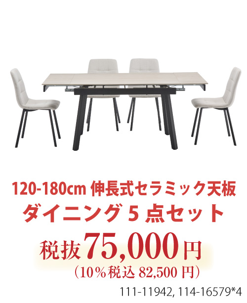120-180cm伸長式セラミック天板 ダイニング5点セット 税抜75,000円