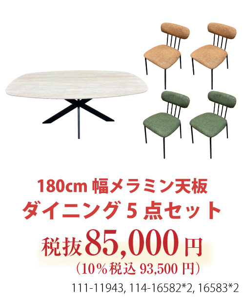 180cmメラミン天板 ダイニング5点セット 税抜85,000円