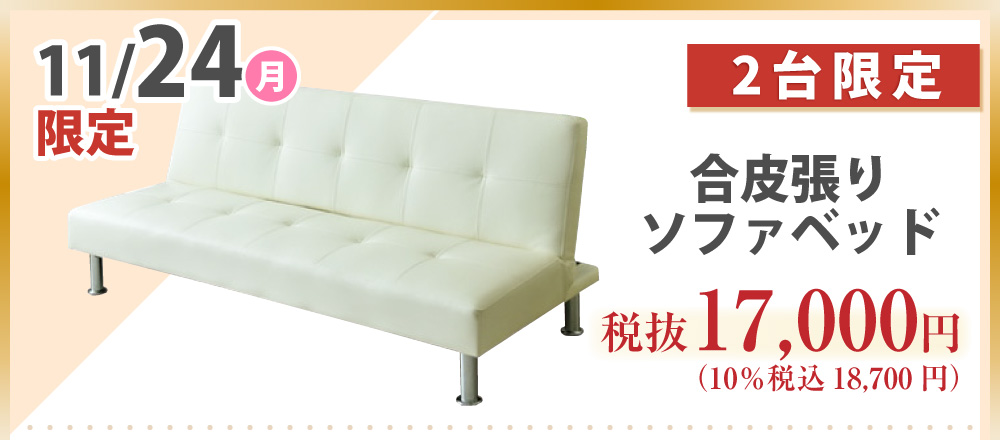 1½4限定【合皮張りソファベッド】税抜17,000円