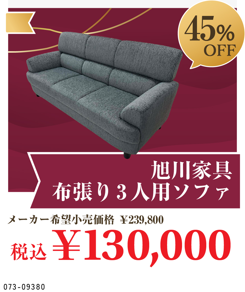 【マルカ家具販売】永く愛用できる国産ソファ「メルローズ」。丁寧な製造と安心のサポートが魅力のメーカー家具。3人掛119,900円(税抜)~。