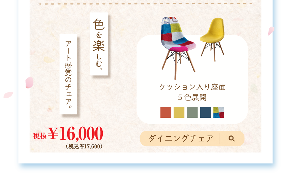 3人掛けソファ ヒロッチ2【お取り寄せ品】65,890円(10%税込)ダイニングチェア ポポ 2脚セット パッチワーク レッド イエロー グリーン ブルー【お取り寄せ品】【お客様組み立て品】17,600円(10%税込)105cm幅 折りたたみセンターテーブル ダイナ ナチュラル/グレー13,189円(10%税込)タフトラグ コムス アイボリー (130×185)【お取り寄せ品】8,789円(10%税込)カーテン4枚組 KFシルフィ 100×178 アイボリー グリーン ライトグレー6,039円(10%税込)ダイニング3点セット ジョイフル&ポポ ラウンドダイニングテーブル チェア【お取り寄せ品】41,789円(10%税込)ダイニング3点セット ジョイフル&ポポ 伸長式ダイニングテーブル チェア【お取り寄せ品】43,989円(10%税込)木製フロアライト マルメ10,989円(10%税込)ワイヤーアート3,850円(10%税込)