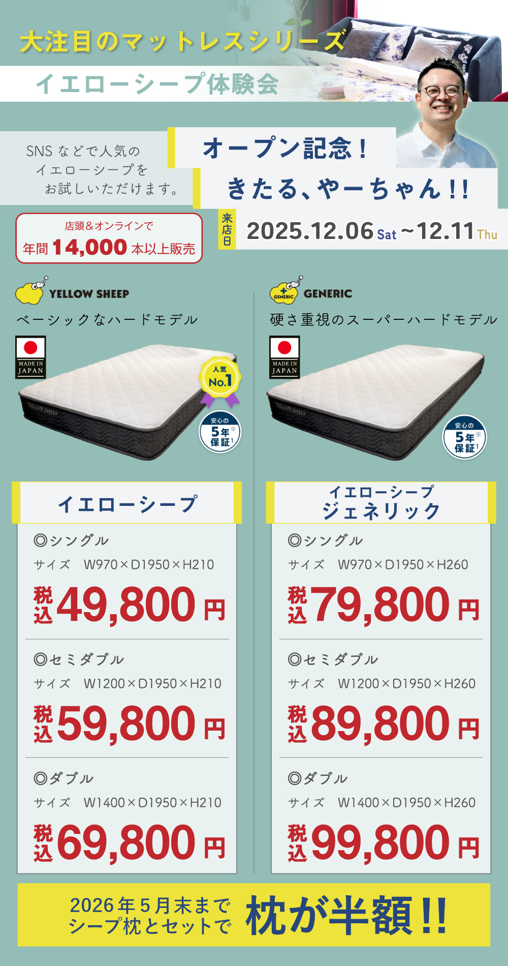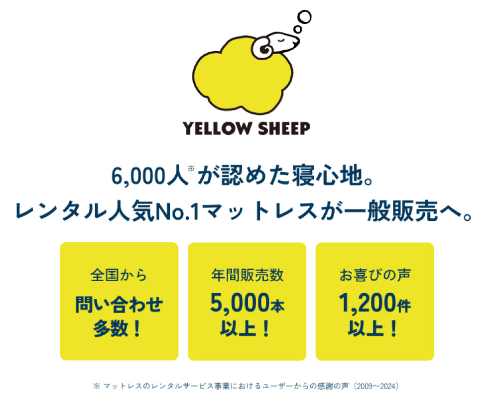 YELLOW SHEEP 6000人が認めた寝心地。レンタル人気No.1マットレスが一般販売へ。