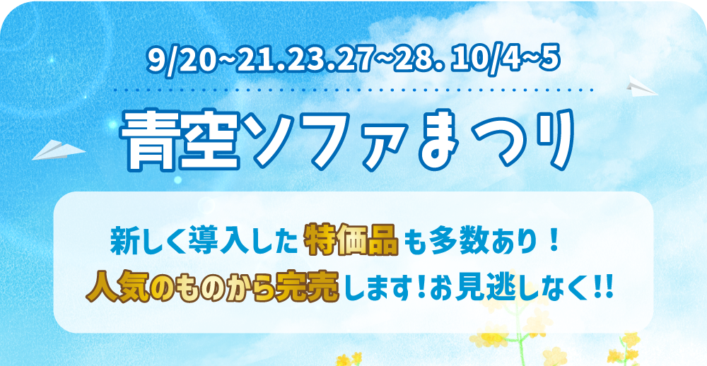 ※青空ソファ祭りは土日・祝日開催(9/20、21、23、27、28、10/4、5)、雨天の場合は中止となります