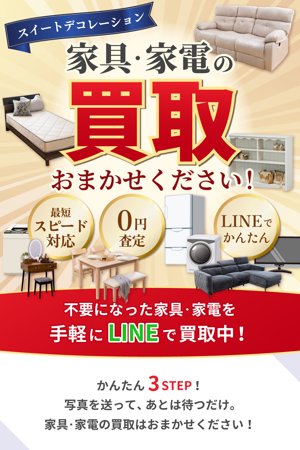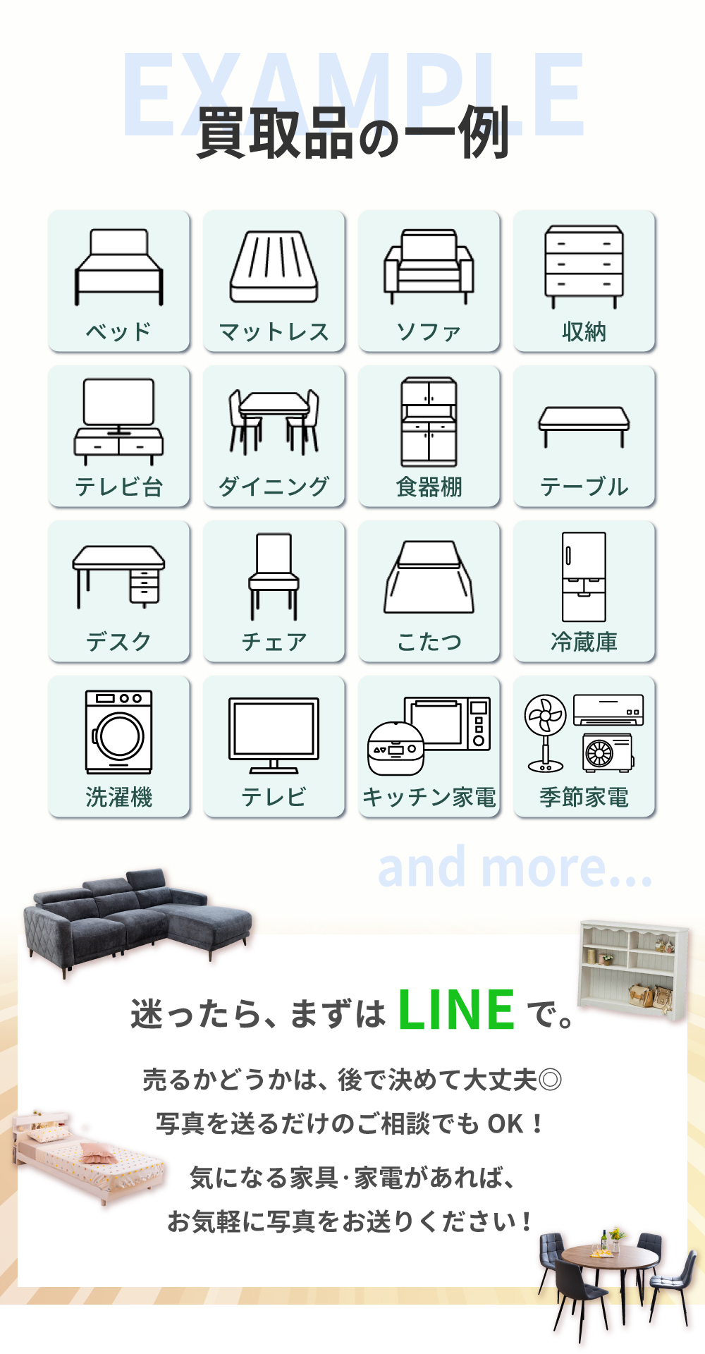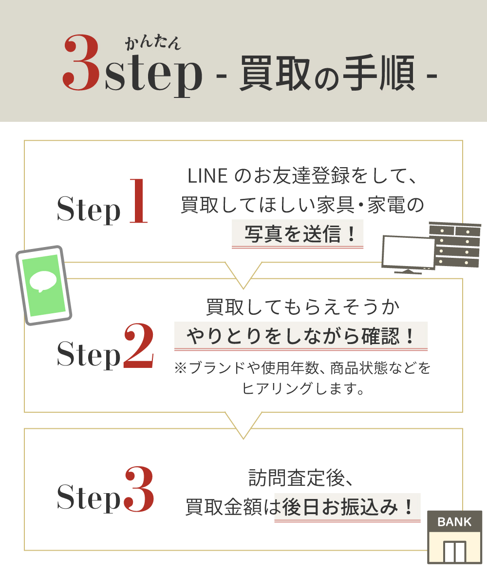 不要になった家具・家電を手軽にLINEで買取中!