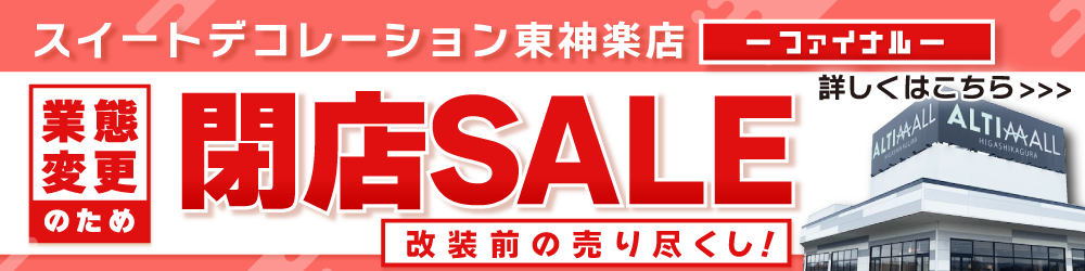 ![]() スイートデコレーション東神楽店 業態変更のため 閉店SALE ファイナル 改装前の売り尽くし! |
