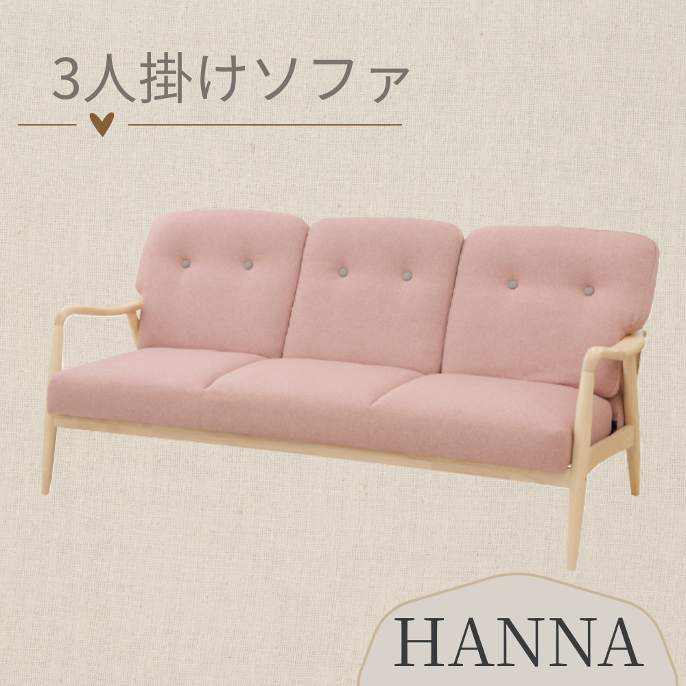 布張り3人掛けソファ HANNA(ハンナ)【お客様組立品】の商品詳細