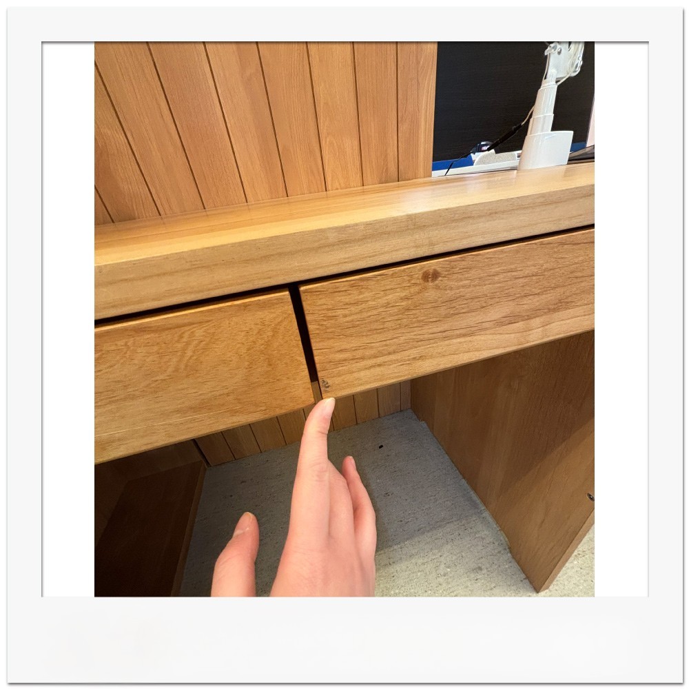 沖縄エリア配送不可商品状態右側引き出し前面に黒い汚れあり。