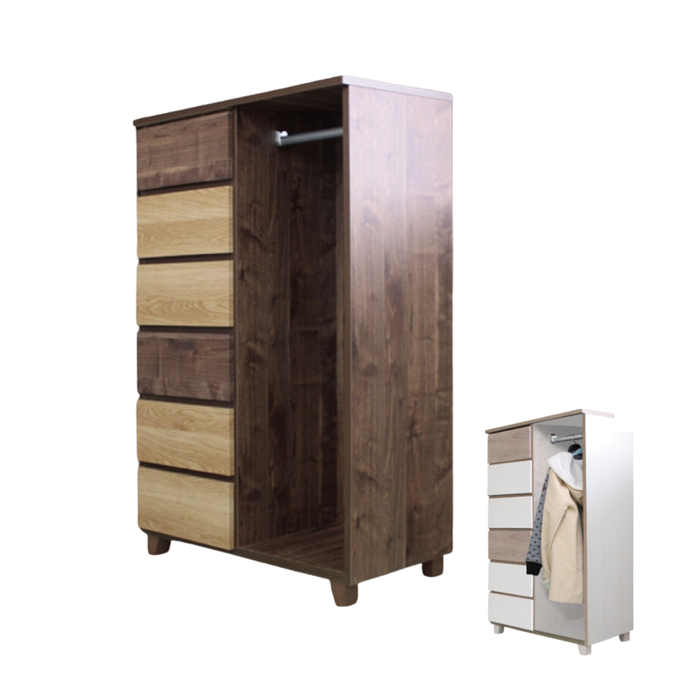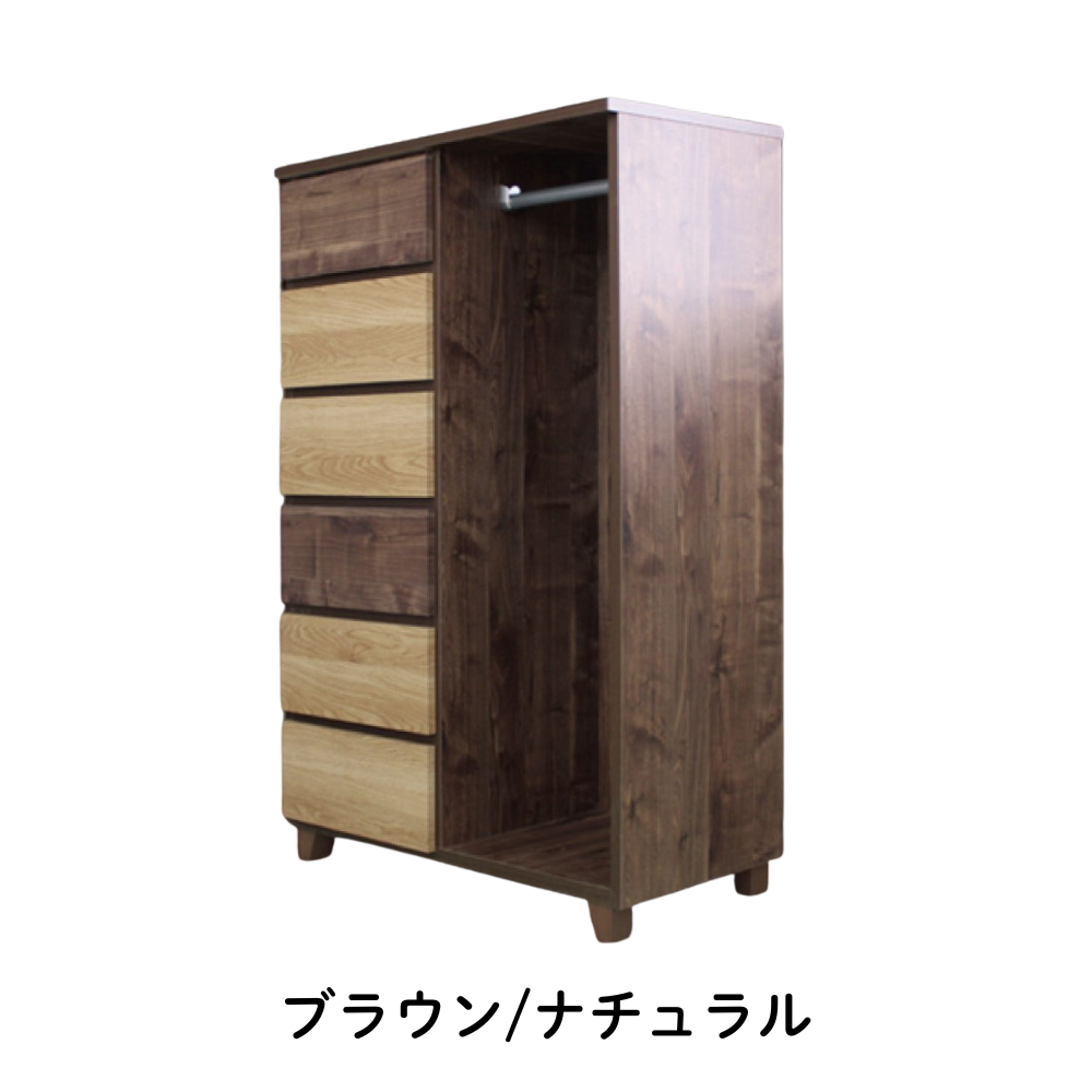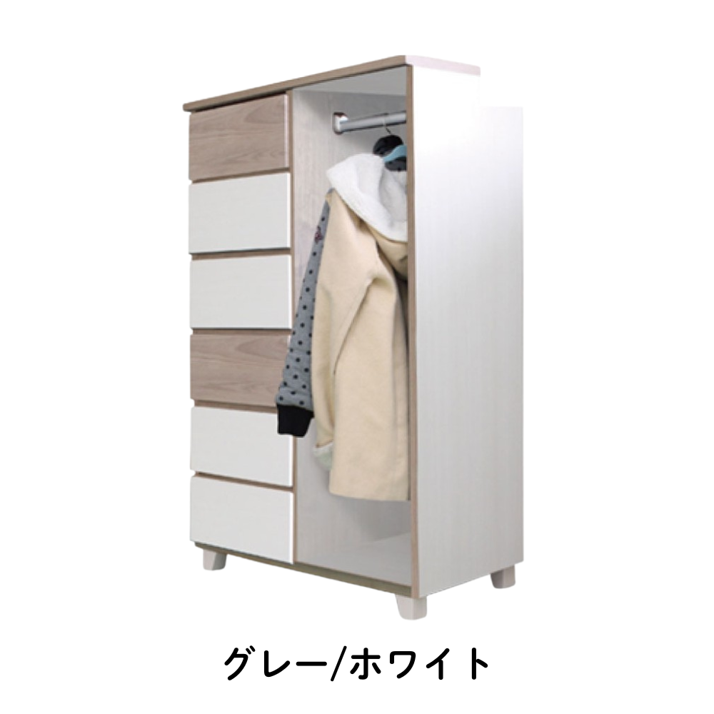 80cm幅 ハンガーチェスト クッキー2 ブラウン/ナチュラル グレー/ホワイト【お取り寄せ品】
