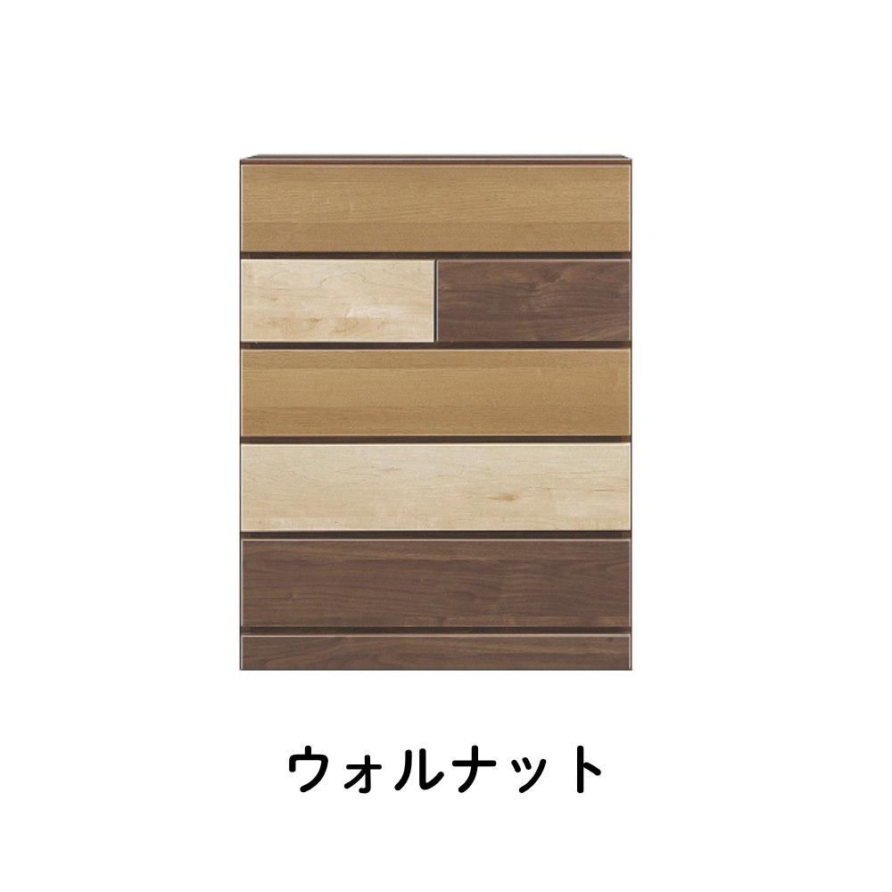 80cm幅 5段ハイチェスト クラウド2 日本製 ウォルナット オーク【お取り寄せ品】