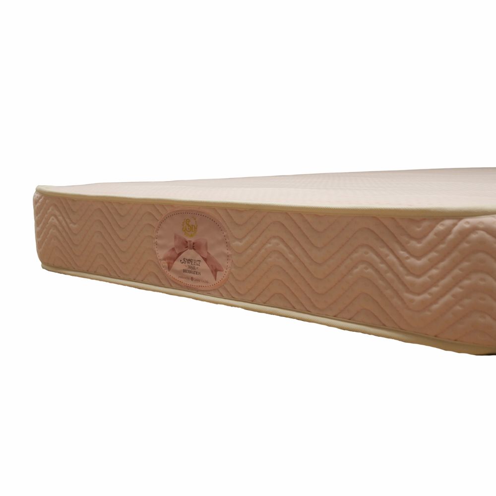 可愛らしいピンク色のマットレスは、寝室を明るく彩るアクセントに。
