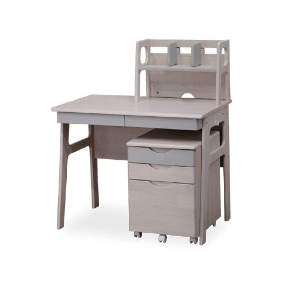 デスクの天板・前板に加え、側板や脚にも天然木を使用。