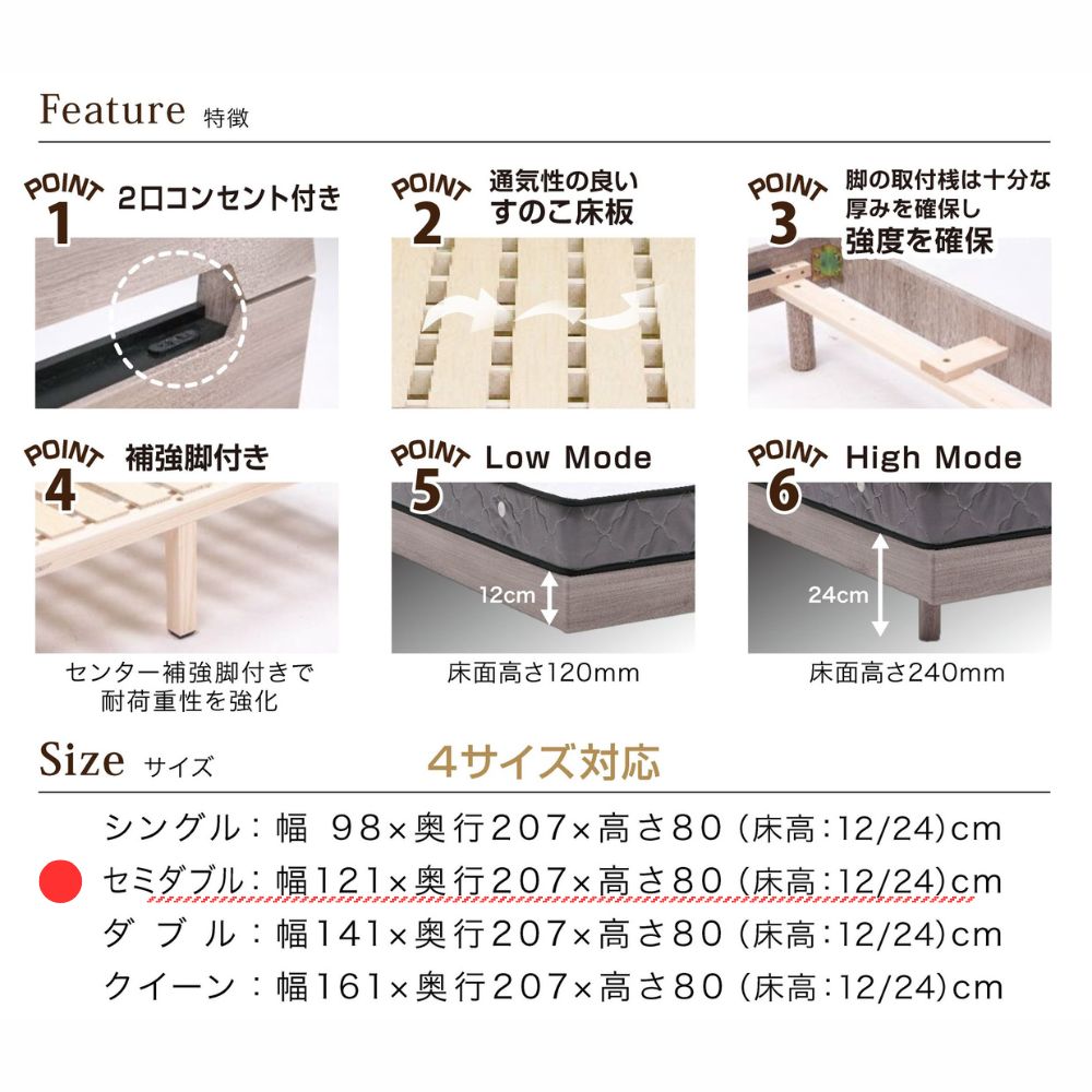 沖縄エリア配送不可シンプルながら洗練されたデザインのセミダブルベッドフレームです。
