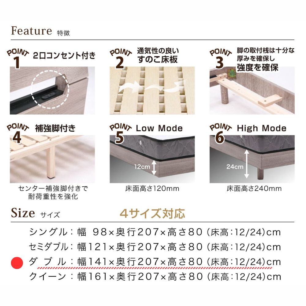 ダブルベッドフレーム SP カリーナPLUS グレー【お取り寄せ品】の商品詳細