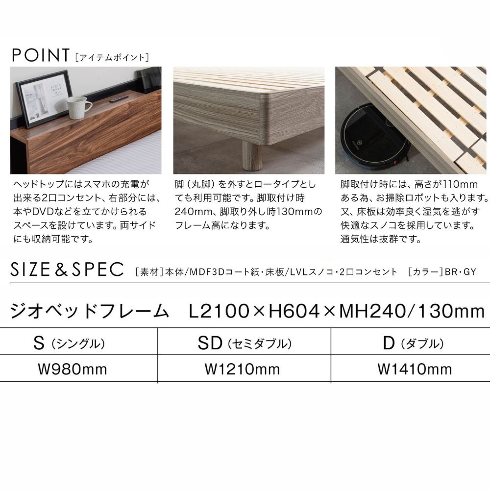 シングルベッドフレーム ジオ ブラウン グレー【お取り寄せ品】の商品詳細