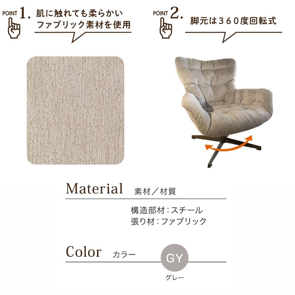 沖縄エリア配送不可ファブリック素材を使用した、ゆったりとくつろげるパーソナルチェアです。