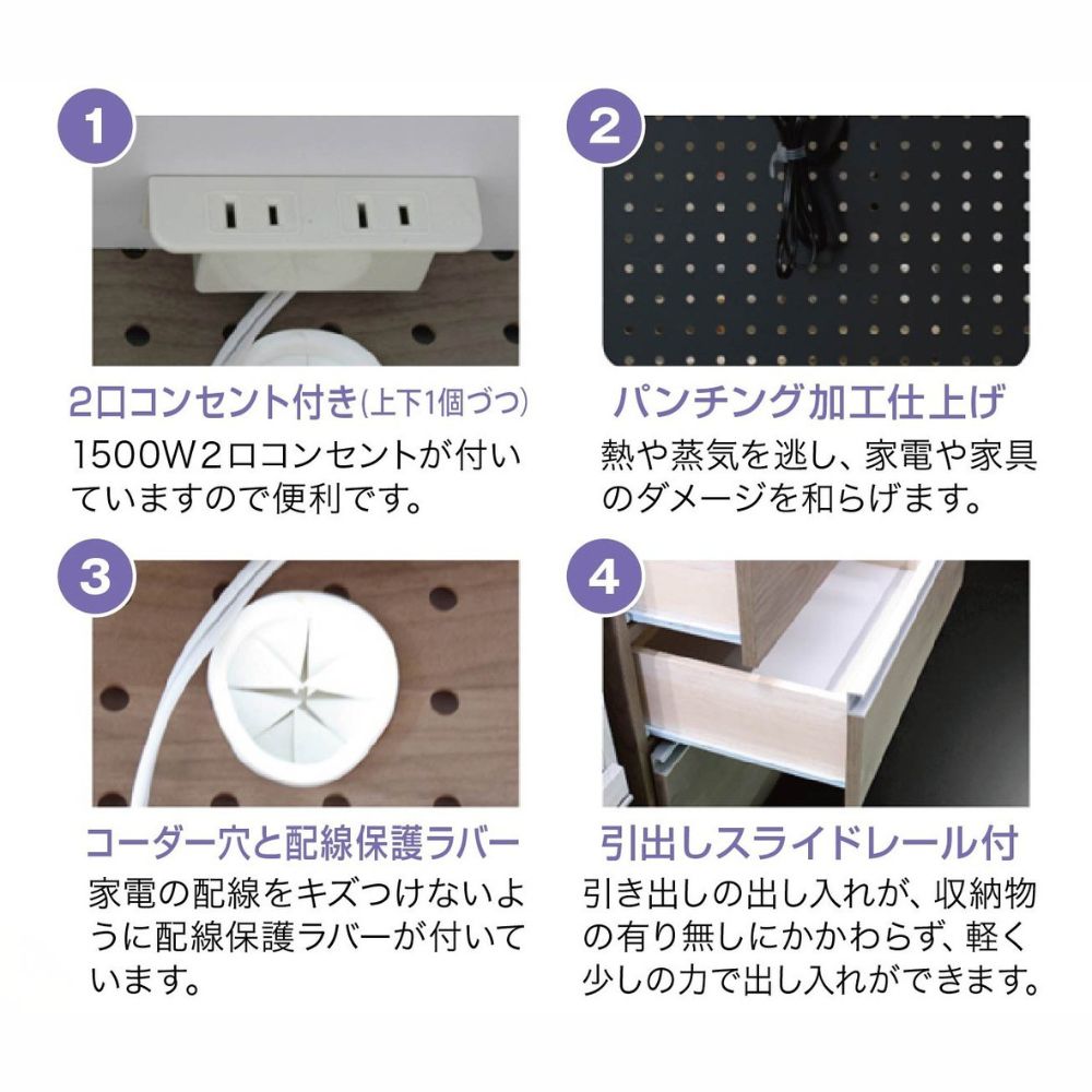 大容量の収納力で、食器や調理器具を効率よく整理できます。