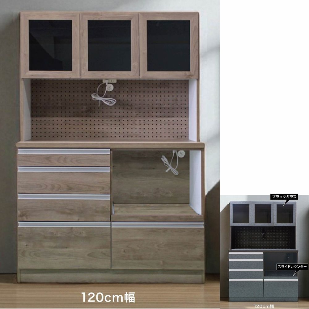 沖縄エリア配送不可キッチン周りをすっきり見せる、幅120cmのモダンな食器棚です。