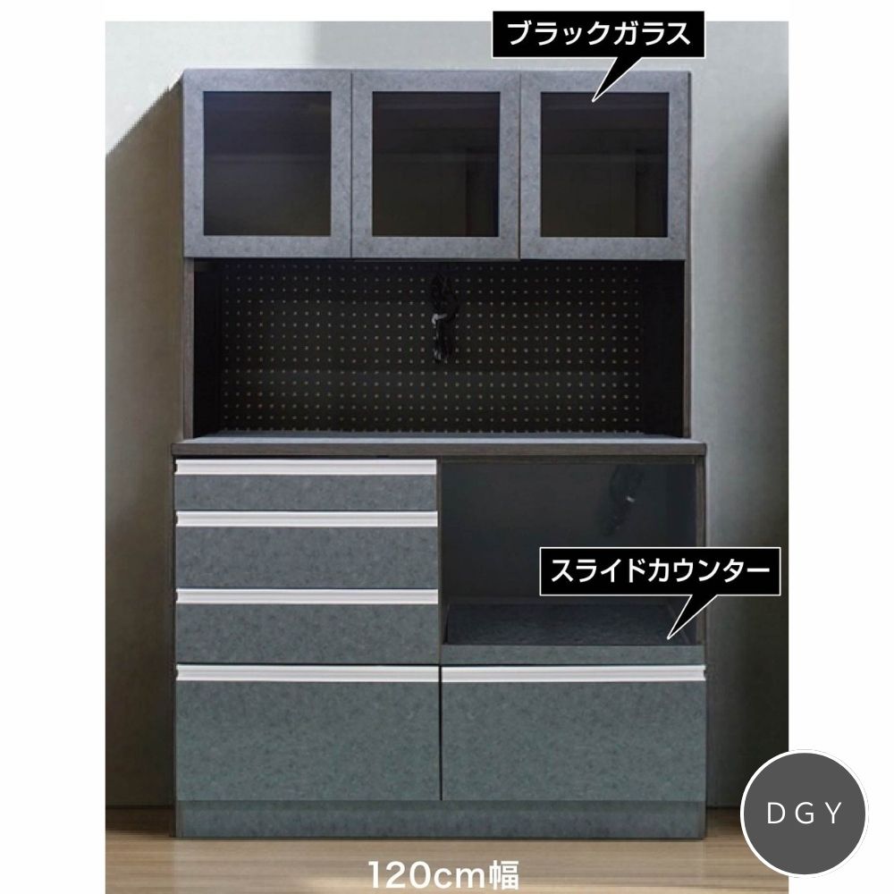 120cm幅ダイニングボード リード グレー ダークグレー 食器棚 キッチンボード【お取り寄せ品】