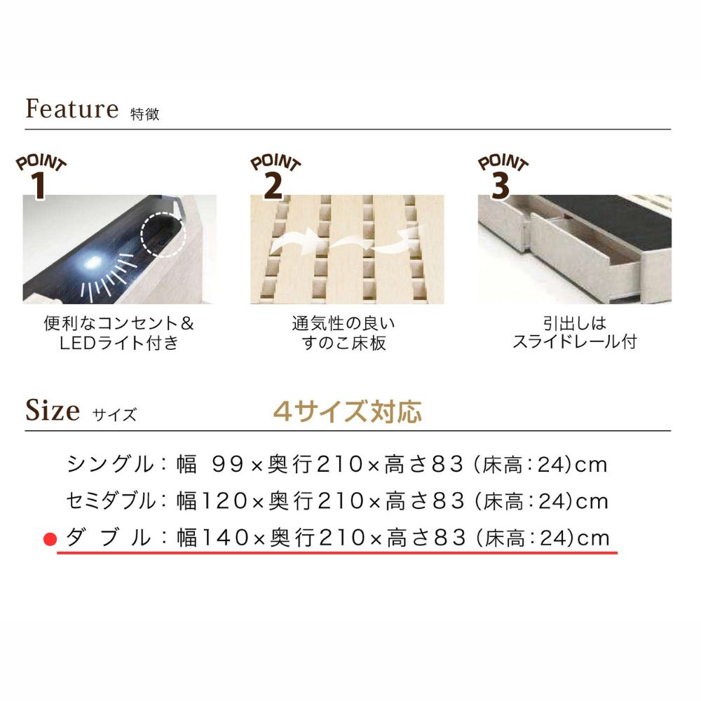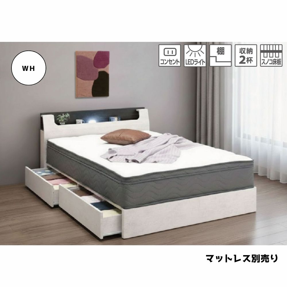 収納BOX付きダブルベッドフレーム アズール ホワイト【お取り寄せ品】の商品詳細