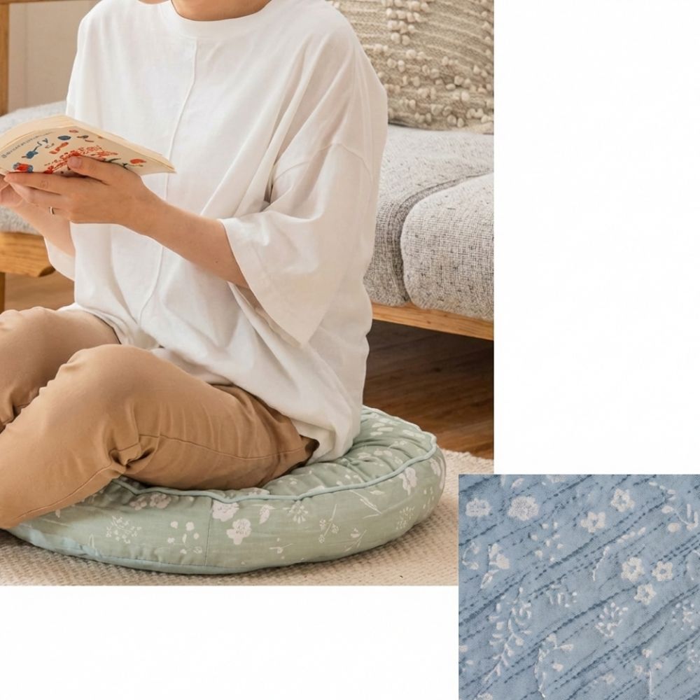 床座りにもぴったり、肌触りの良いふくれ織りのフロアクッション。