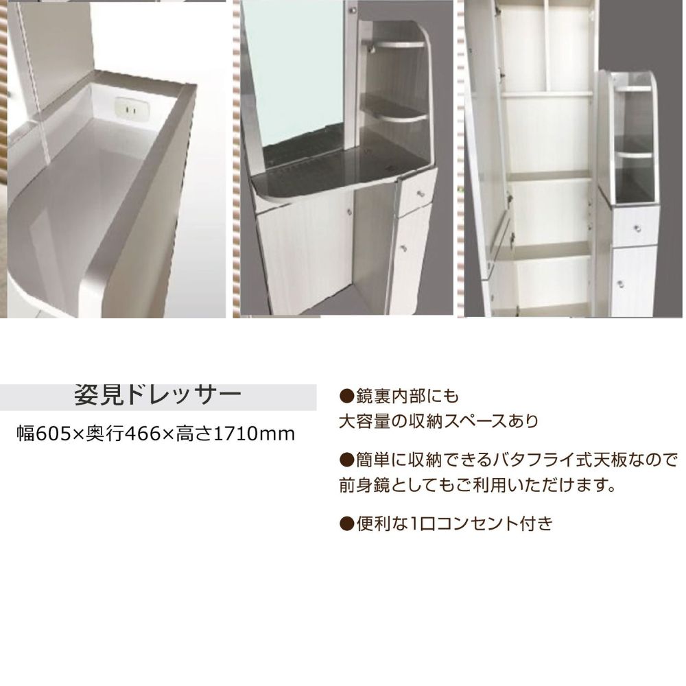 沖縄エリア配送不可お部屋に馴染みやすい木目柄の姿見ドレッサーです。