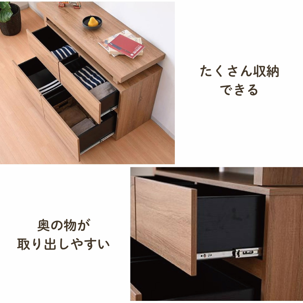 引き出しはフルオープンレールを採用し、奥にしまった物までスムーズに取り出せます。