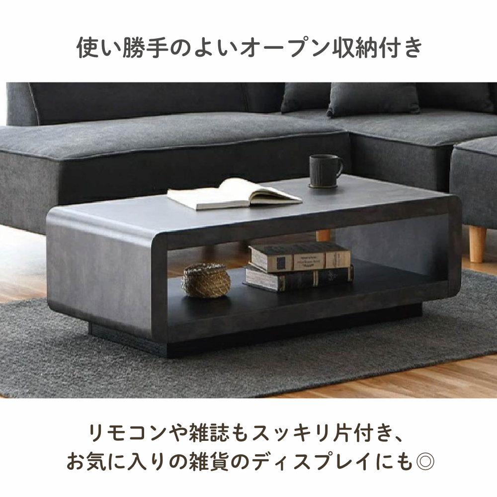 天板下のオープン収納スペースは、リモコンや雑誌などの整理に便利です。