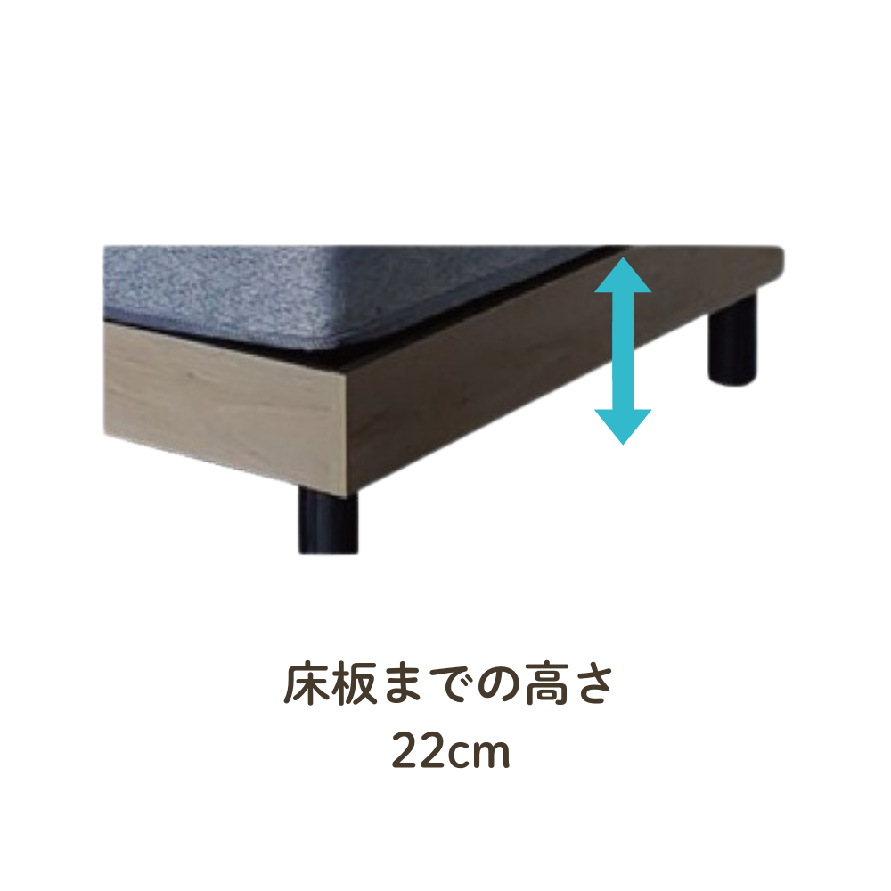 床板までの高さは22cm、脚は11cmで、お掃除も簡単に行えます。