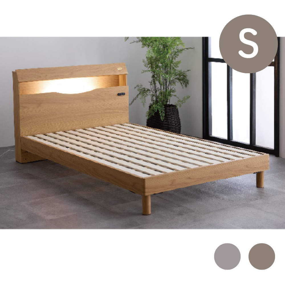 ヘッドボードにはLED照明と便利な1口コンセントを搭載。