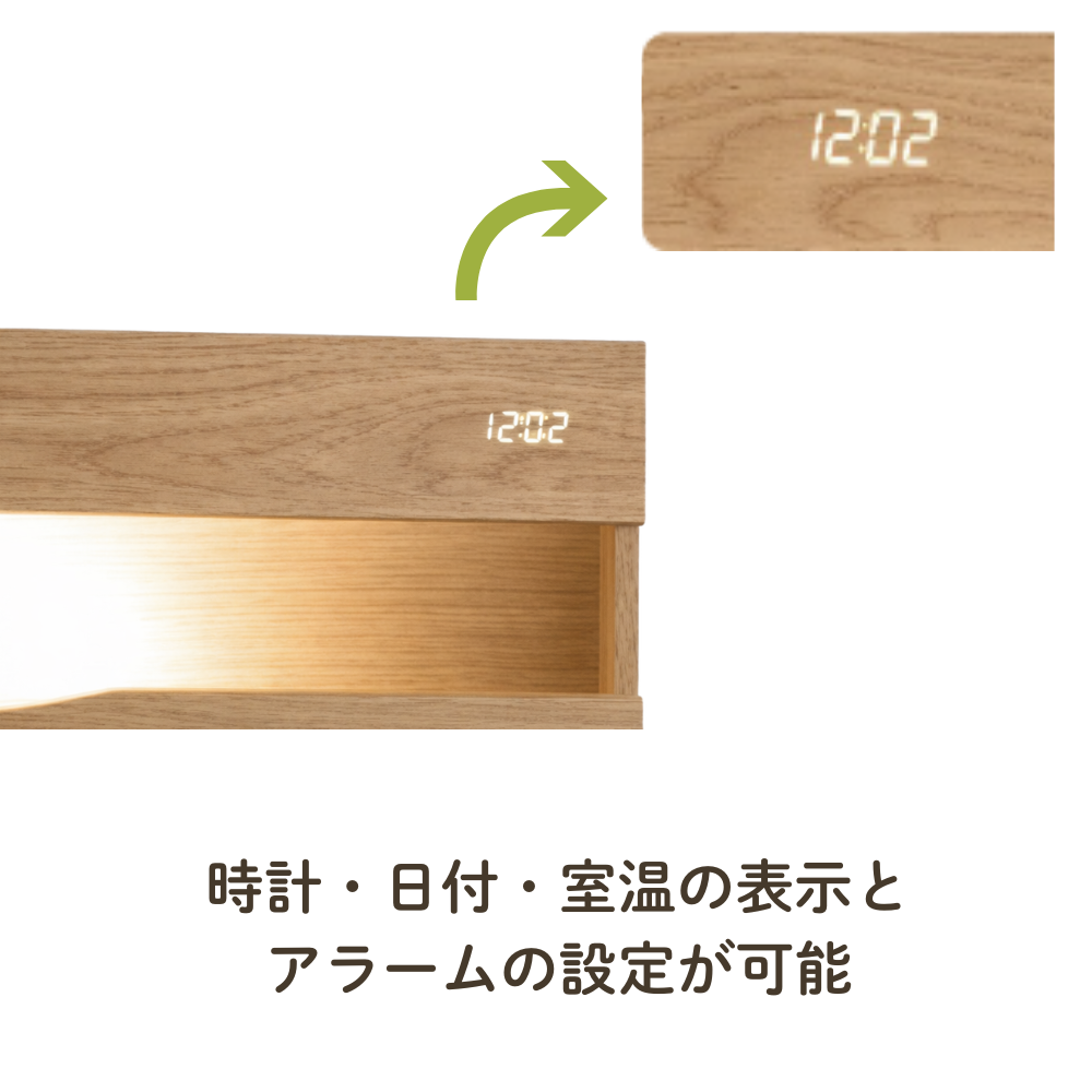 さらに、時計、日付、室温表示、アラーム設定機能も付いており、快適な寝室空間をサポートします。