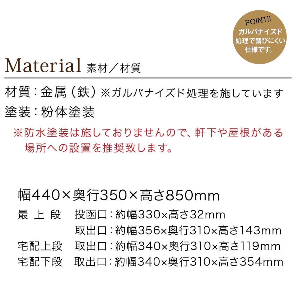 サイズ幅440mm × 奥行350mm × 高さ850mm