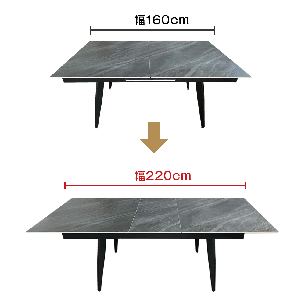 160-200cm幅 伸長式ダイニングテーブル セラム ブラック セラミックの商品詳細