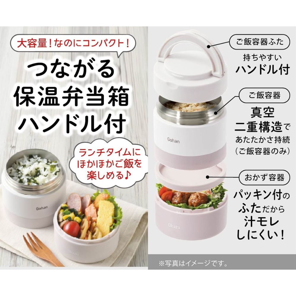 温かいお弁当を手軽に持ち運べる、ハンドル付きの保温ランチ用品です。