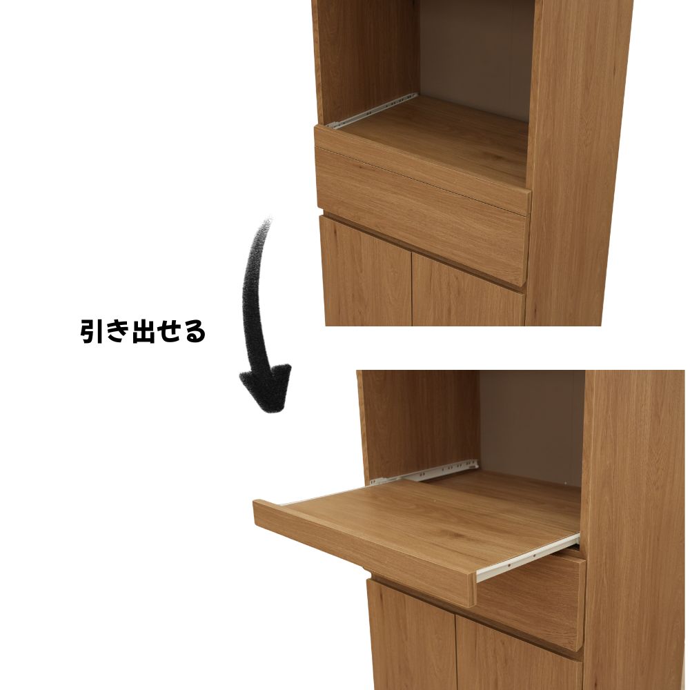 スライド棚付きで、蒸気の出る炊飯器やポットの出し入れもスムーズに行えます。