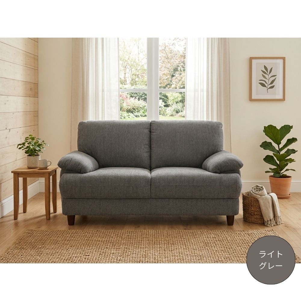 撥水布張り布張り2人掛けソファ ケイド ライトブラウン ライトグレーの商品詳細