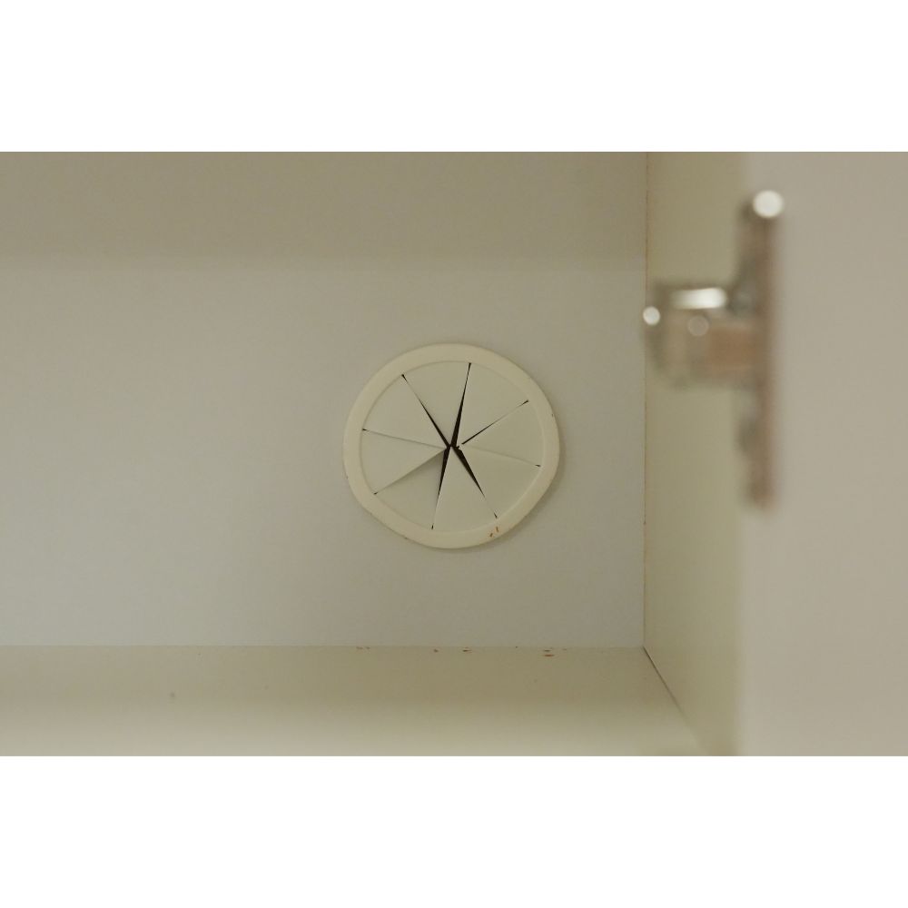 扉付きの収納スペースは、生活感の出やすい小物を隠して収納できるため、