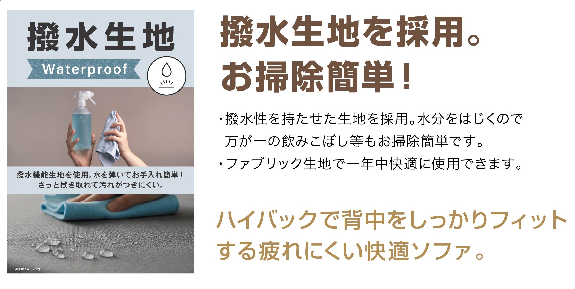 撥水布張り3人掛けソファ ジータ ネイビー グレーの商品詳細