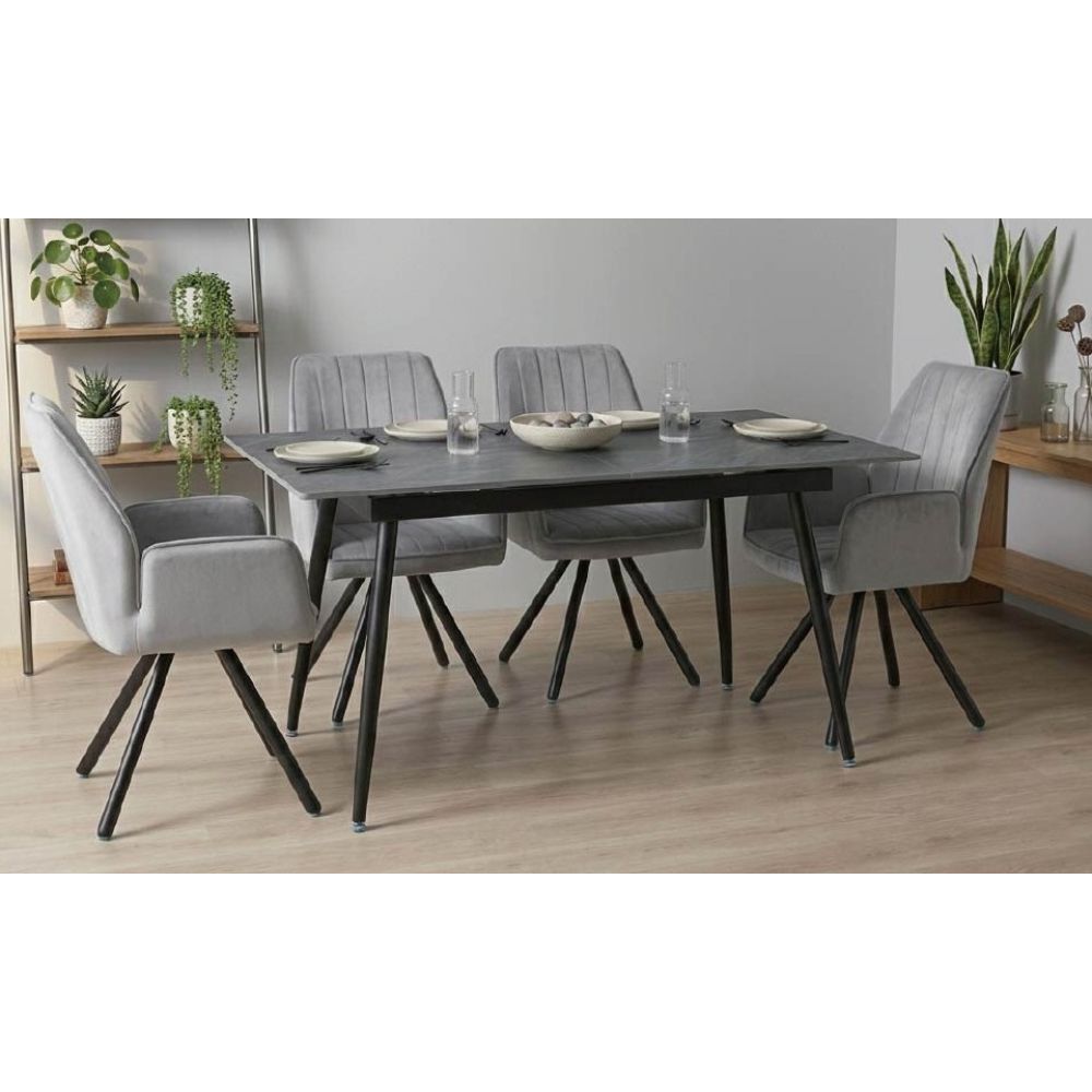 セラミックダイニング5点セット エクレ ブラック/リンカ アイボリーの商品詳細