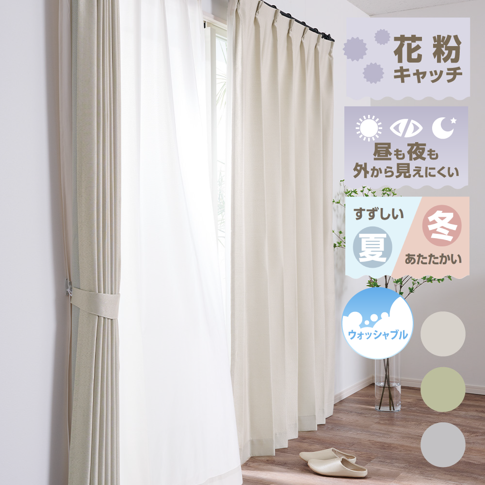 カーテン4枚組 KFシルフィ アイボリー グリーン ライトグレー