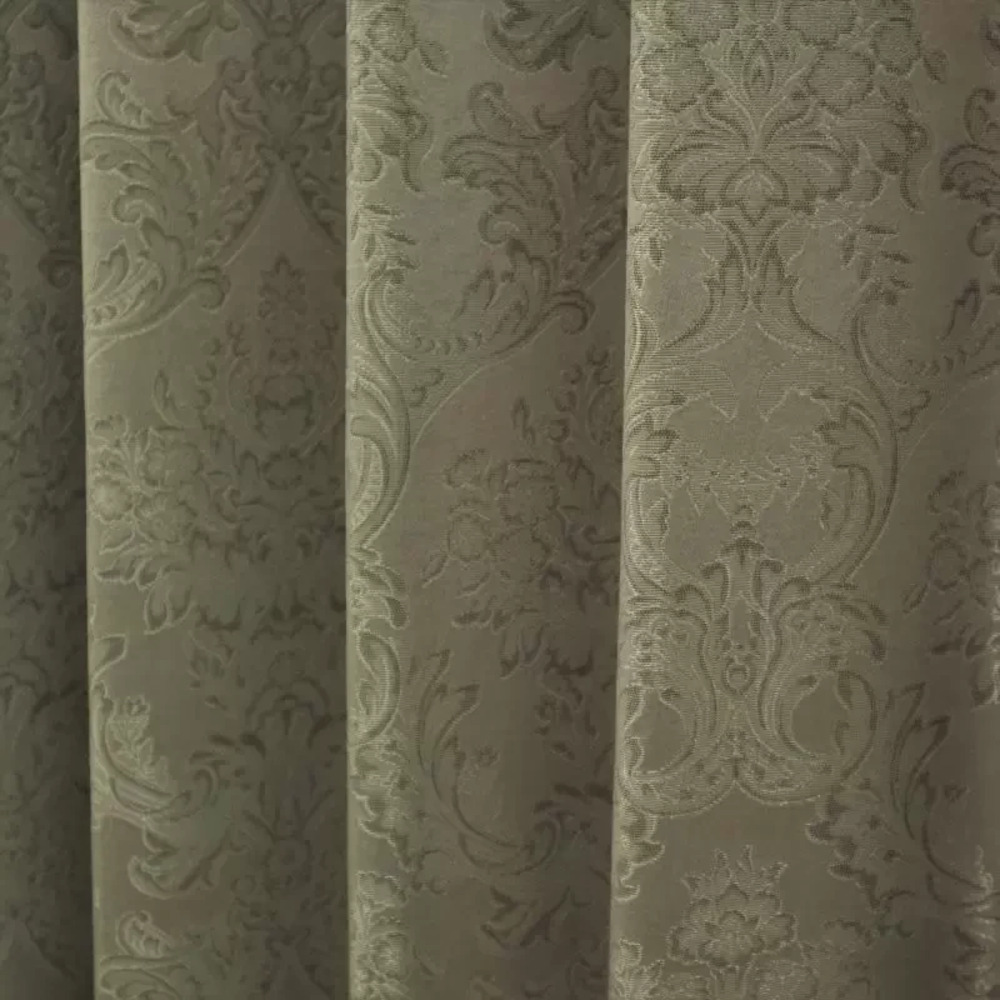 クラシックな紋様が非常に繊細に織で表現されており、ベースと紋様が近い色味のため、シンプルで使いやすいクラシックテイストの生地です。紋様の縁取りに光沢感のある糸が使われているため、高級感も感じさせる1枚です。