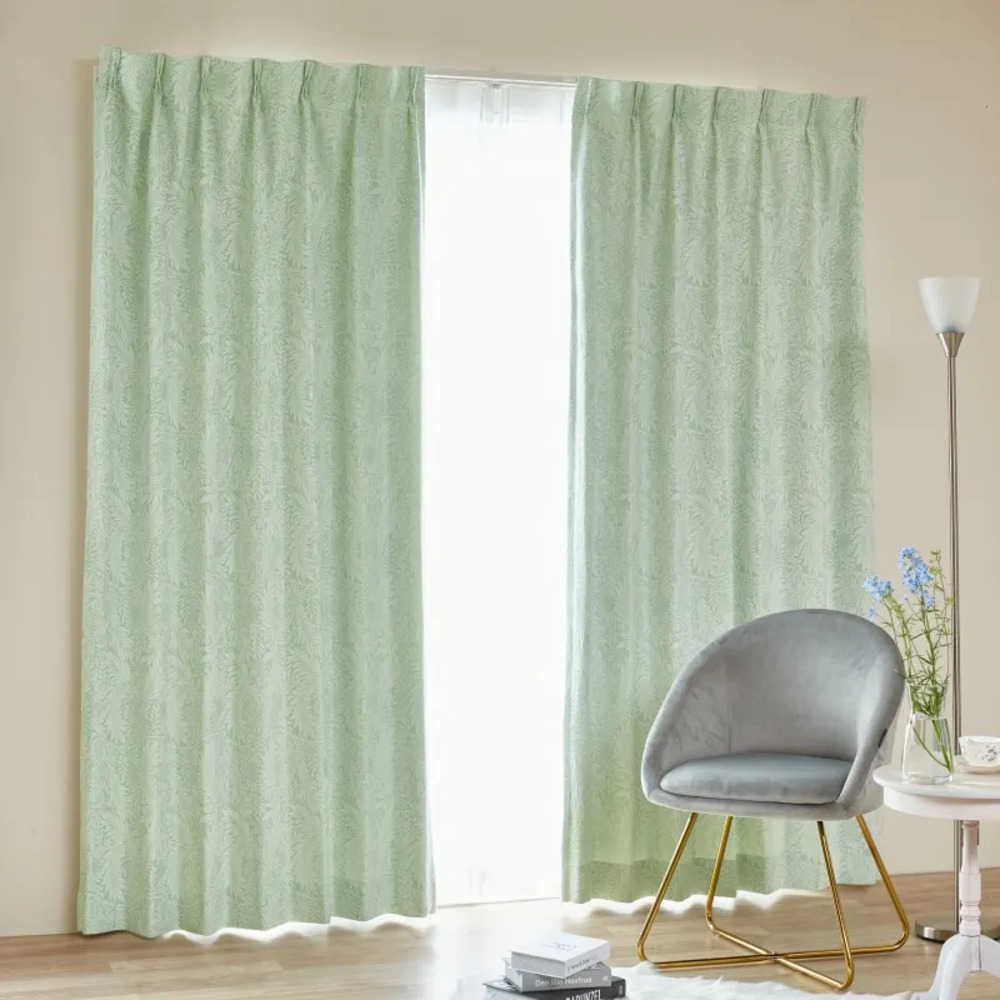 モリス調の植物柄を優しい色合いで表現した、やわらかな印象のドレープです。なめらかな曲線に載る蔦のデザインがここちよく、上品で高級感のあるおすすめ商品です。ナチュラル、エレガンスモダン、クラシックのインテリアテイストによく馴染み、おしゃれで癒しも与えてくれます。カラー:上品なミントグリーン色手洗いでのお洗濯が可能です。
