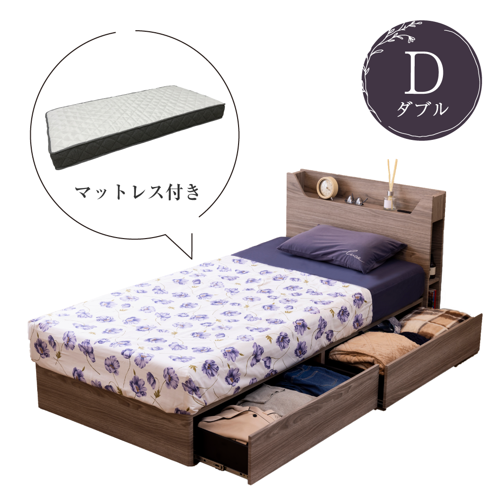 ダブル チェストベッドフレーム カリーナ ナチュラル ウォルナット【マットレス別売り】