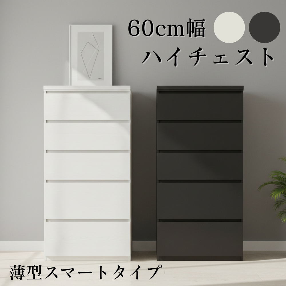60cm幅スマートハイチェスト ケース2 ホワイト(木目柄) ブラック(セラミック柄)【お取り寄せ品】