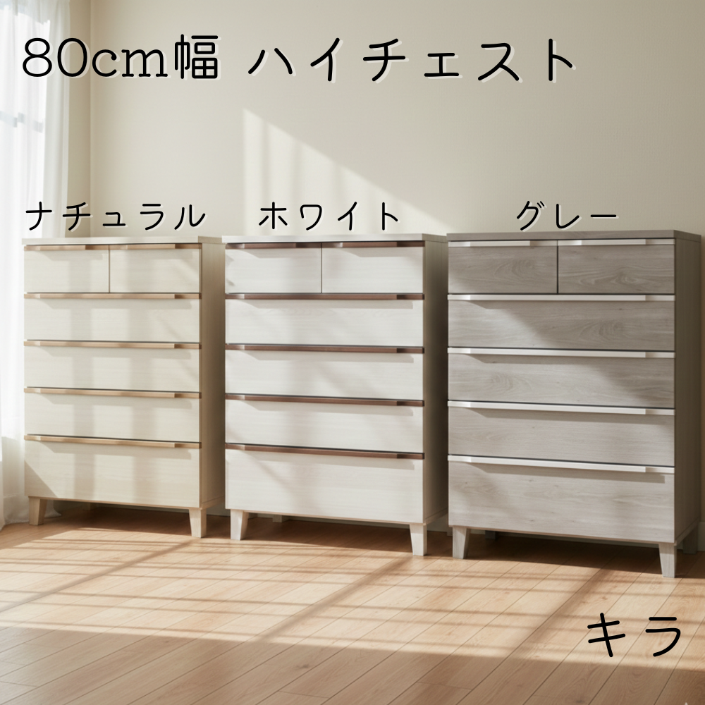 キラ 5段ハイチェスト 幅80cm ホワイト グレー ナチュラル【お取り寄せ品】